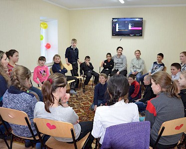 „Kinder, das ist unser neues Zuhause!“ Lena Uchnal, die unsere Kinderarbeit leitet, stellt Tanja vor. Ein Raunen geht durch die Gruppe. Neugierig betrachten sie jeden Raum, die Küche, das Esszimmer, das Bad, den großen Saal.
