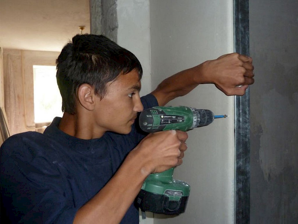 In den kommenden Tagen befestigen sie Rigipsplatten, spachteln, verlegen Stromkabel und isolieren Fenster. Das sind natürlich unbeschreiblicher Erfolgserlebnisse. Und als sie dann noch einen kleinen Lohn erhalten, können sie ihr Glück kaum fassen.