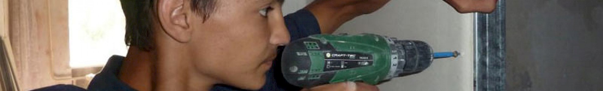 „Was sind das denn für Jungen. Die tragen ja alle dieselbe Arbeitskleidung und schleppen schwere Maschinen in unser Haus!“ Ganz aufgeregt beobachten einige Großmütter, die auf einer Bank sitzen, wie Jungen aus unserer „Lehrwerkstatt“ zu ihrer Baustelle laufen.