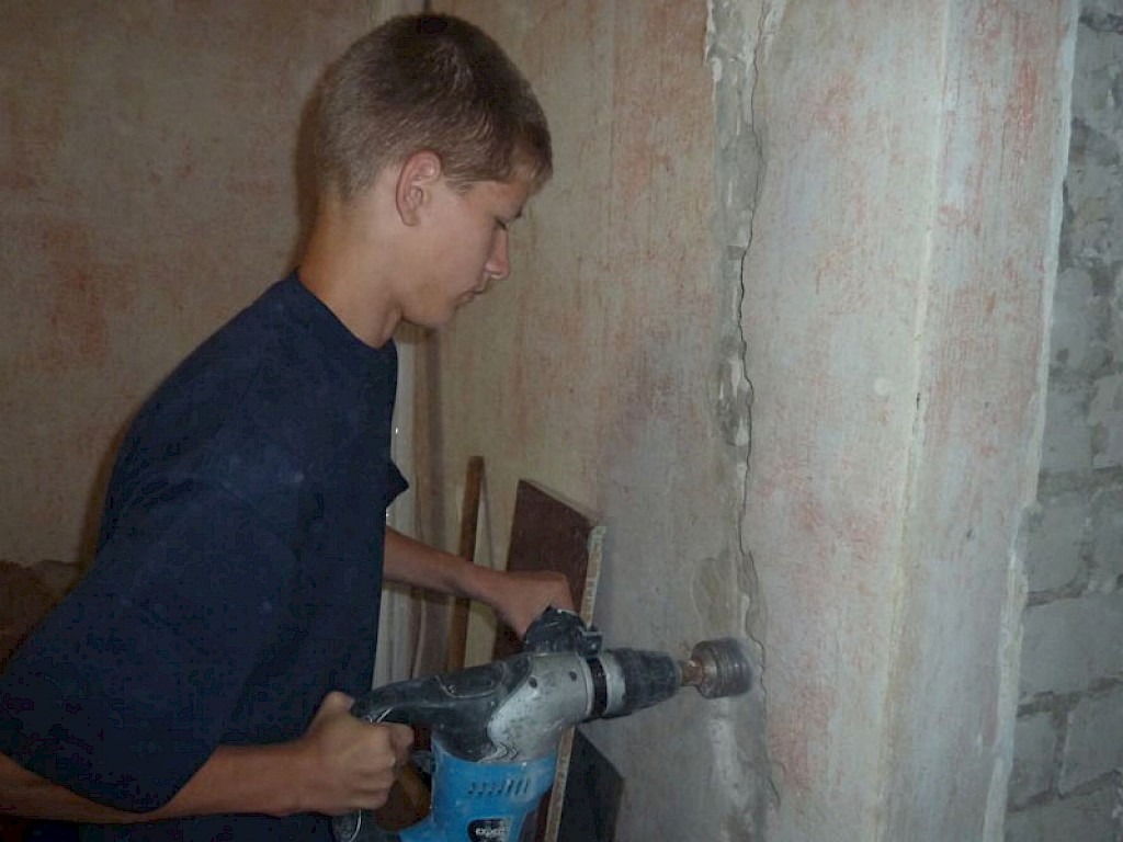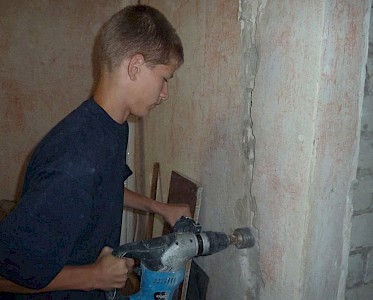 Wenjamin, der Leiter von unserem Alphakurs, will seine Wohnung renovieren, da hat er sich die Jungen aus unserer „Lehrwerkstatt“ eingeladen. Sie sind vielleicht nicht so qualifiziert, aber ihr Enthusiasmus gleicht das wieder aus.