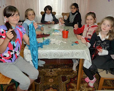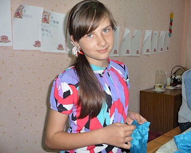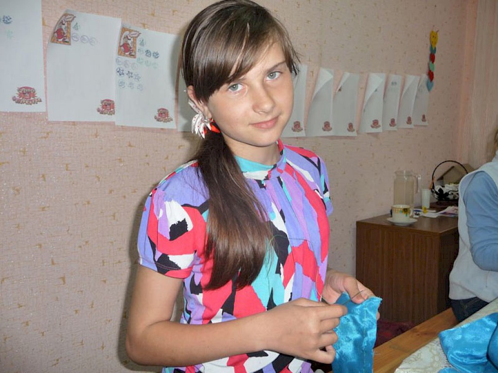 Es ist ein langer Weg, der viel Geduld erfordert, mit unterentwickelten Kindern zu arbeiten, die mit 12 Jahren noch keinen Buntstift, keine Schere in ihrer Hand gehalten haben. Wie sollen sie lernen, einen Schal oder eine bunte Haarschleife zu schneidern.