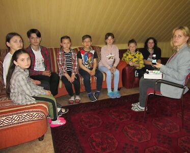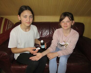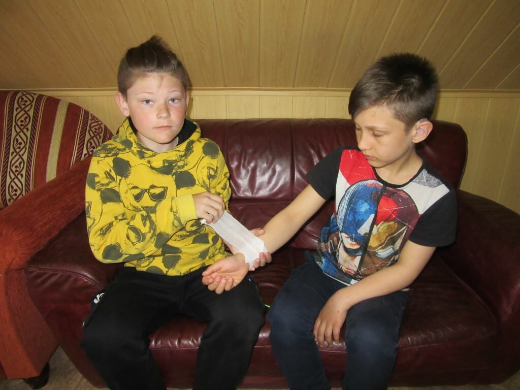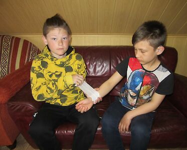 Bereits vor dem Krieg haben wir mit unseren Kindern Erste-Hilfe-Kurse durchgeführt. Es gibt immer wieder Situationen, in denen es wichtig ist, richtig und schnell zu handeln. „Was muss ich tun, wenn ich mich mit einem Messer schneide?“ „Einmal habe ich mich an einem Ast verletzt. Ich wollte den Kratzer nicht desinfizieren. Es dauerte lange bis die Wunde verheilte.“