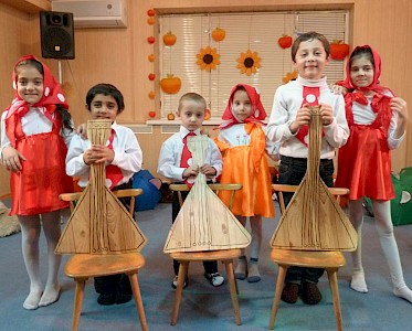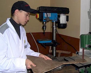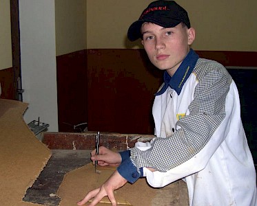 Die Ausbildung in unserer „Lehrwerkstatt“ hat erst vor zwei Monaten so richtig begonnen, da haben wir schon den ersten Auftrag erhalten. Zum Weihnachtsfest werden die „Spatzen“ einen lustigen Tanz aufführen, zu dem sie bunte Dekorations-Balalaikas benötigen.