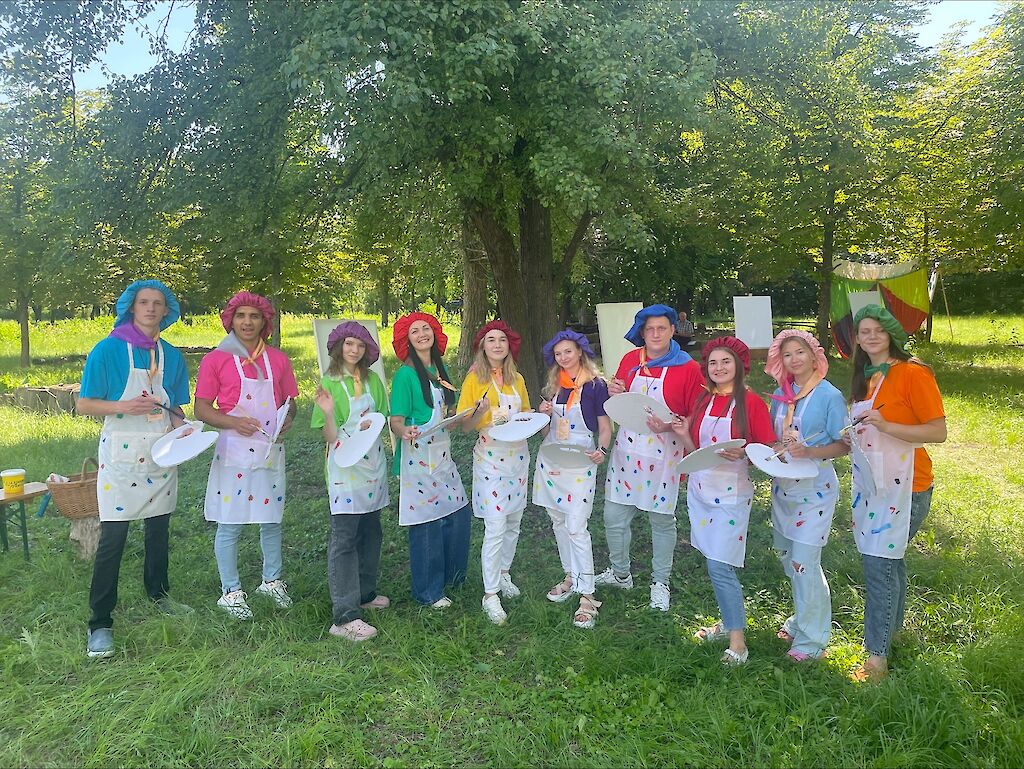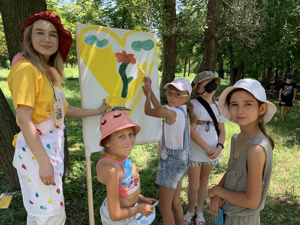 Eine Gruppe Künstler empfing gestern Morgen unsere Kinder auf dem Freizeitgelände des Sommerlagers. Verzweifelt standen sie vor ihren Leinwänden, da ihnen keine grandiose Idee für ein besonderes Bild einfiel. „Könnt ihr uns helfen?“, riefen sie den gerade ankommenden Kindern zu. Aufgeregt verteilten sich die Mädchen und Jungen in Gruppen um die Künstler, um ihnen beim Malen eines Bildes zu helfen.