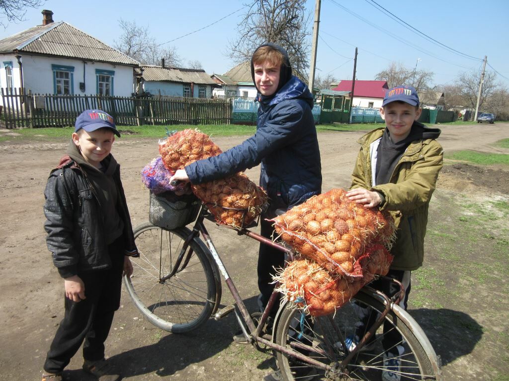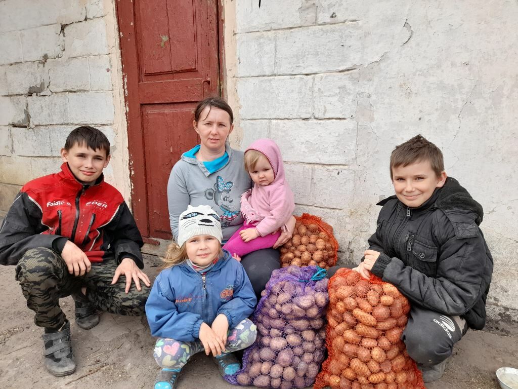 „Könnt ihr uns helfen? Wir haben kein Geld für Saatkartoffeln.“ Familie Chomenko hat fünf Kinder. Vor Kriegsbeginn arbeitete der Vater in der Stadt, bekam regelmäßigen Lohn. Jetzt hat er keine Arbeit mehr, Sozialleistungen werden nur verzögert ausgezahlt.