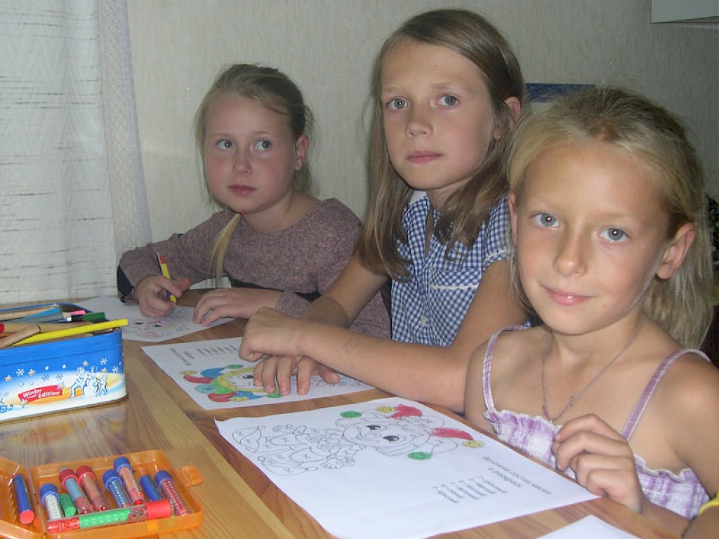 Die Familie hat zwar eine Wohnung, in der die Eltern mit ihren fünf Kindern wohnen. Da der Vater aber keine Arbeit findet, weiß die Familie nicht, wie sie überhaupt überleben soll. Da sind sie froh, dass wir sie mit Hilfsgütern aus Deutschland versorgen und ihre Kinder in unsere „Villa Sonnenschein“ kommen dürfen.