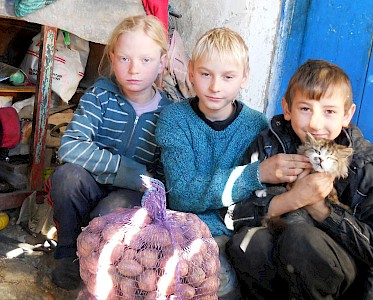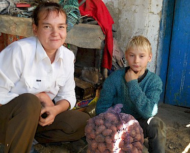 Den ersten Besuch auf ihrem Weg statten sie Familie Jaritsch ab. Sie wollen Aliona Jaritsch und ihren vier Kindern Kartoffeln und Winterkleidung bringen. Aliona ist tief bewegt und fragt immer wieder, mit was sie es verdient hat, dass wir sie in ihrer Notsituation unterstützen.