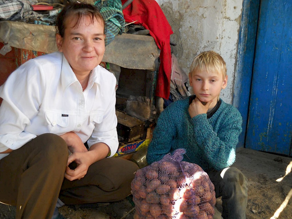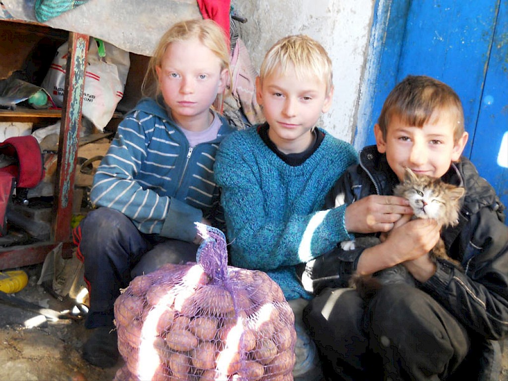 Den ersten Besuch auf ihrem Weg statten sie Familie Jaritsch ab. Sie wollen Aliona Jaritsch und ihren vier Kindern Kartoffeln und Winterkleidung bringen. Aliona ist tief bewegt und fragt immer wieder, mit was sie es verdient hat, dass wir sie in ihrer Notsituation unterstützen.