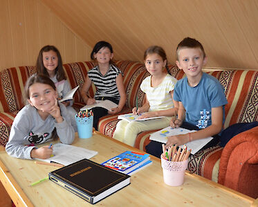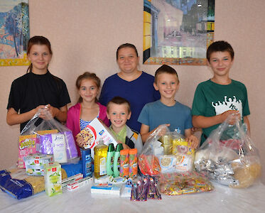 Fünf der Kinder haben wir in unserem „Tageskinderheim am See“ aufgenommen. Dort essen die Kinder zu Mittag, ihnen wird bei den Hausaufgaben geholfen und sie können spielen. Dank der Spenden aus Deutschland helfen wir der Familie mit Lebensmitteln und Hygieneartikeln. Viele weitere Familien in der Ukraine brauchen auch unsere Unterstützung.