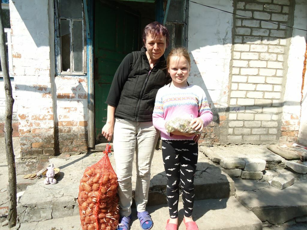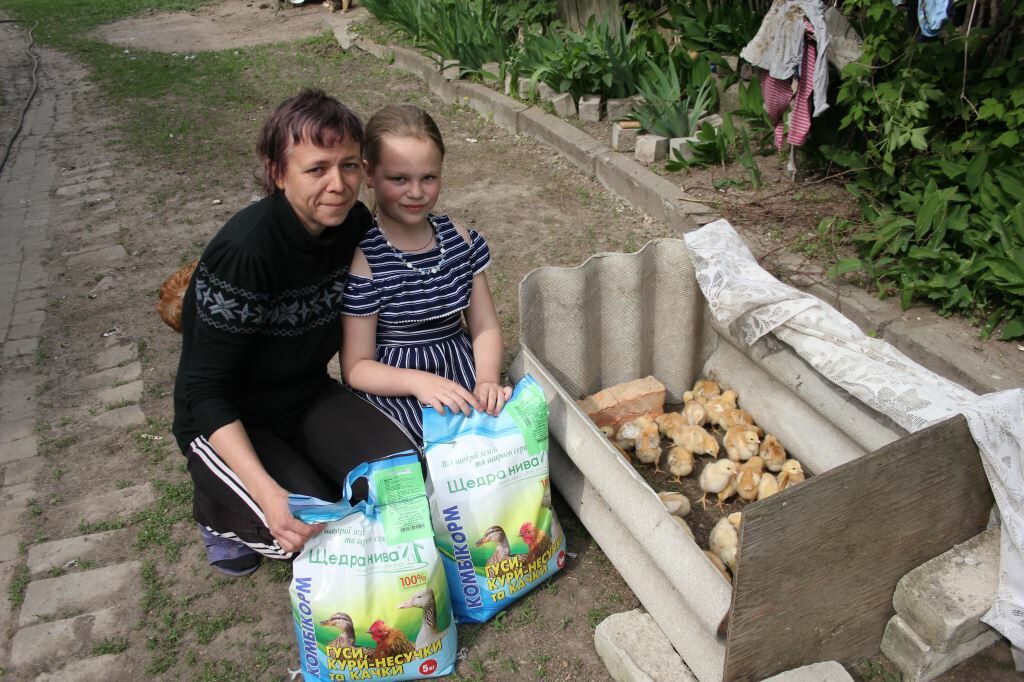 “Mein Mann und ich hatten so viele Pläne. Aber der Krieg machte alles zunichte. Es bleibt so viel Arbeit liegen.” Dschenja, der Familievater, meldete sich bereits in den ersten Kriegstagen freiwillig zur Armee. Oxana blieb mit den beiden Kindern allein zurück. Der ältere Sohn ist behindert. Jana, die Tochter, hilft der Mutter. Wir haben die Familie mit dem Kauf einer Ziege und mit Hühnerküken unterstützt. Die Ziege war trächtig und brachte zwei Zicklein zur Welt. So haben sie Milch und werden Fleisch und Eier essen können. Im Gemüsegarten wachsen Kartoffeln und Zwiebeln.