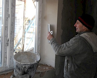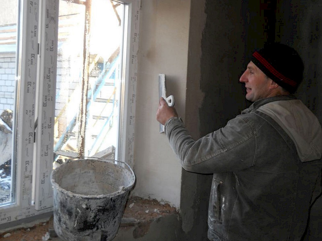 In dieser Woche wurden in die Gebäude neue Fenster eingesetzt, die erst einmal verputzt werden mussten. Parallel wurden die letzten Decken mit Plastikpanelen verkleidet. Für die Elektroinstallation wurden bereits alle Kabel verlegt.