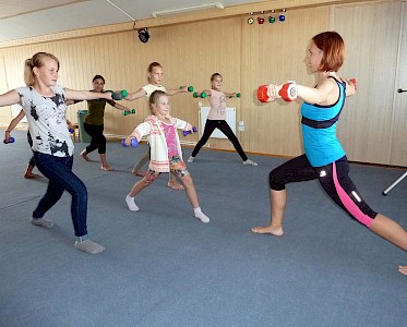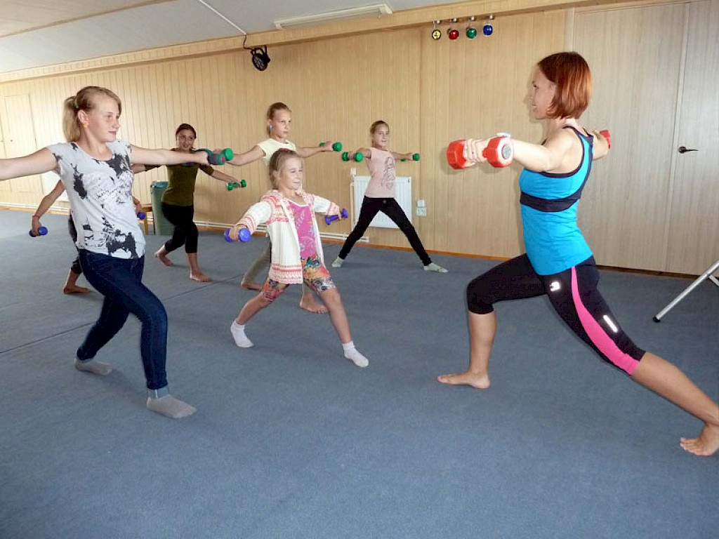 „Kinder, ich hoffe, eure Gelenke sind nicht total eingerostet. Ich hoffe, ihr habt euch in den Ferien auch jeden Tag ein wenig bewegt!“ Heute trifft sich die Fitnessgruppe zum ersten Mal nach den Ferien unter der Leitung von Olga Schumilo im großen Versammlungsraum unserer „Villa Sonnenschein“.