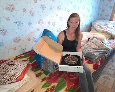 Wir helfen diesen Flüchtlingen mit Lebensmitteln, Bettwäsche und Kleidung. Für Lena haben wir eine elektrische Kochplatte gekauft. Alle Familien sind unendlich dankbar.