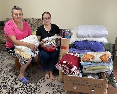 Bis vor sieben Monaten standen in der Zentralukraine viele Häuser leer. Keiner wollte freiwillig in einem „vergessenen“ Dorf wohnen. Heute sind alle Häuser bewohnt. Flüchtlinge zogen in halb verfallene Hütten. Die Menschen sind bereit, unter unmenschlichen Bedingungen zu leben. Die Dorfbewohner helfen den Vertriebenen. Immer wieder klingelt das Telefon in unserem ukrainischen Büro: „In unsere Straße ist eine neue Familie gezogen. Helfen Sie bitte.“ Unsere Mitarbeiter versuchen, die Familie persönlich kennenzulernen. Wir bringen Lebensmittel, Decken und Geschirr vorbei. Anderen Familien helfen wir mit Brennholz.