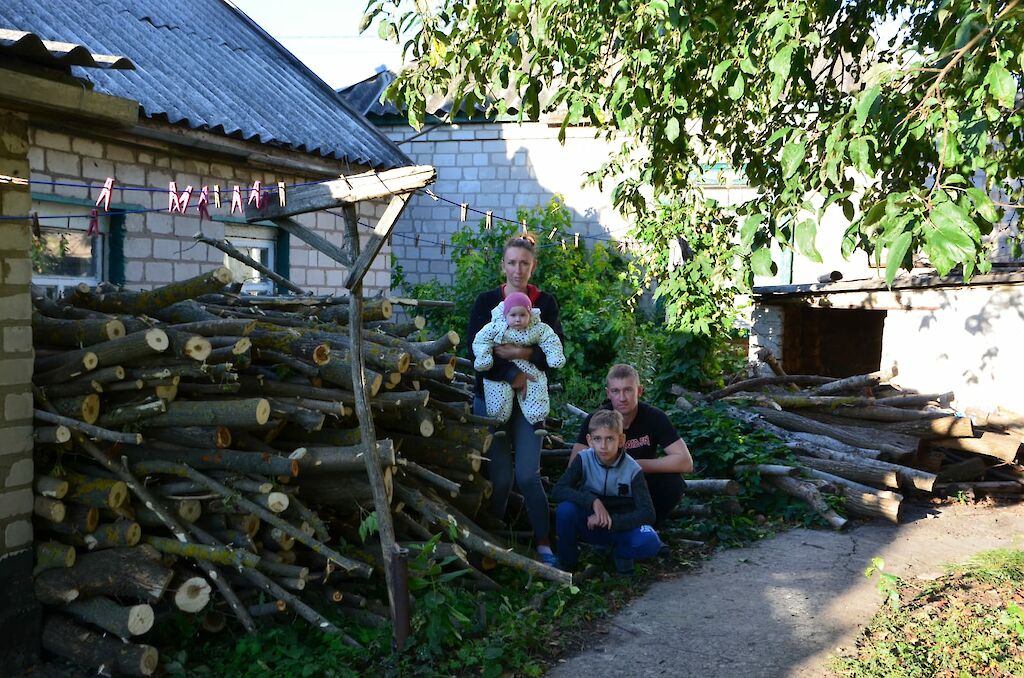 Bis vor sieben Monaten standen in der Zentralukraine viele Häuser leer. Keiner wollte freiwillig in einem „vergessenen“ Dorf wohnen. Heute sind alle Häuser bewohnt. Flüchtlinge zogen in halb verfallene Hütten. Die Menschen sind bereit, unter unmenschlichen Bedingungen zu leben. Die Dorfbewohner helfen den Vertriebenen. Immer wieder klingelt das Telefon in unserem ukrainischen Büro: „In unsere Straße ist eine neue Familie gezogen. Helfen Sie bitte.“ Unsere Mitarbeiter versuchen, die Familie persönlich kennenzulernen. Wir bringen Lebensmittel, Decken und Geschirr vorbei. Anderen Familien helfen wir mit Brennholz.