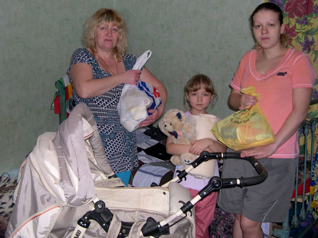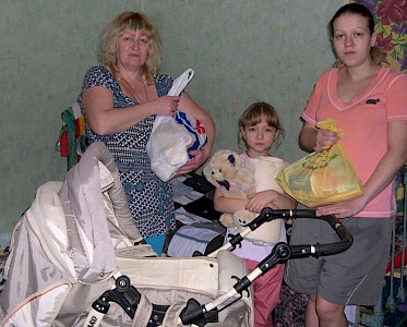 In der vergangenen Woche hat die Mutter einer dieser Familien ein Kind zur Welt gebracht und wir versuchen ihr nun mit einem Kinderwagen, mit Kinderkleidung und mit Babynahrung ganz besonders zur Seite zu stehen.