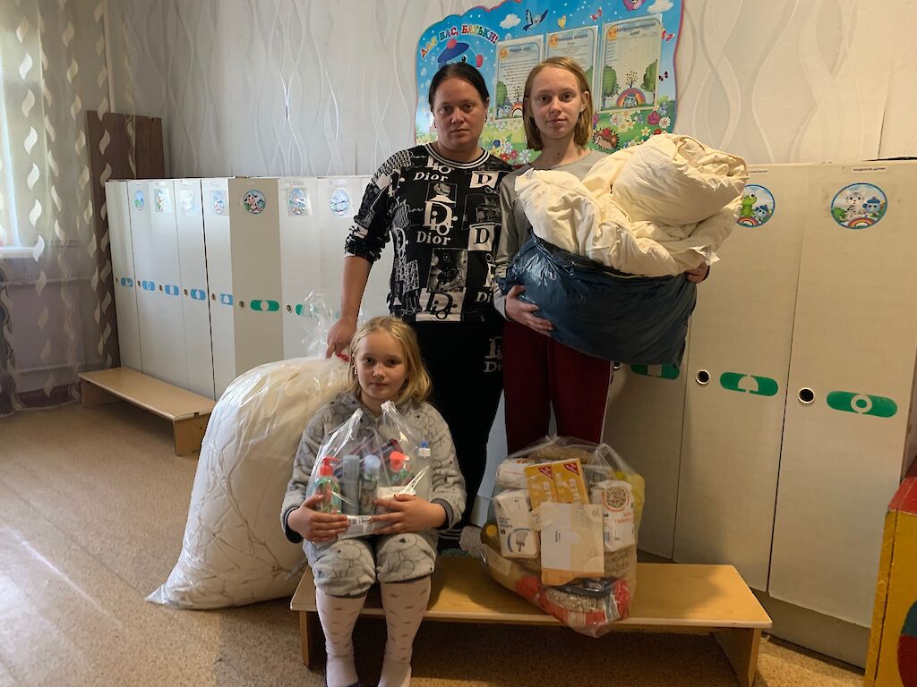 Nachts wurde sie mit anderen Flüchtlingen in Kleinbussen nach Switlowodsk evakuiert. Jetzt wohnen sie im Kindergarten. Die Räume, die vor neun Monaten noch mit Kinderlachen gefüllt waren, sind nun zu einem Zuhause für Menschen geworden, die vor dem Krieg fliehen mussten. Sie sind dankbar für Lebensmittel und Decken, die sie von uns erhalten.