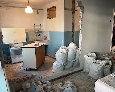 Jedoch wird es immer schwieriger in der Zentral- und Westukraine eine Unterkunft für Flüchtlinge zu finden. Freiwillige reinigen verlassene Häuser, installieren Strom, bauen Warmwasserbereiter ein, tauschen Sanitäranlagen aus. Die Menschen, die in renovierte Wohnungen und Hütten ziehen können, sind von Herzen dankbar, wenn sie eine Unterkunft zum Überwintern bekommen.