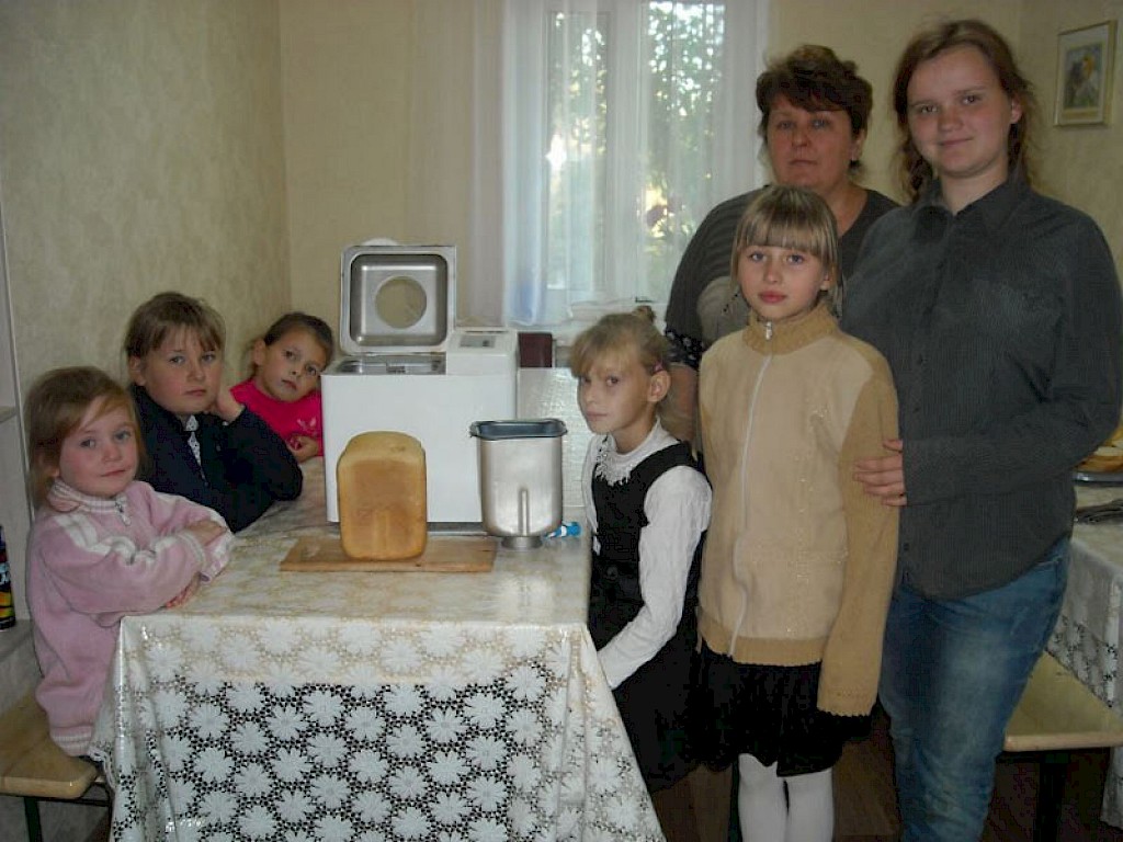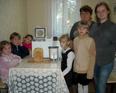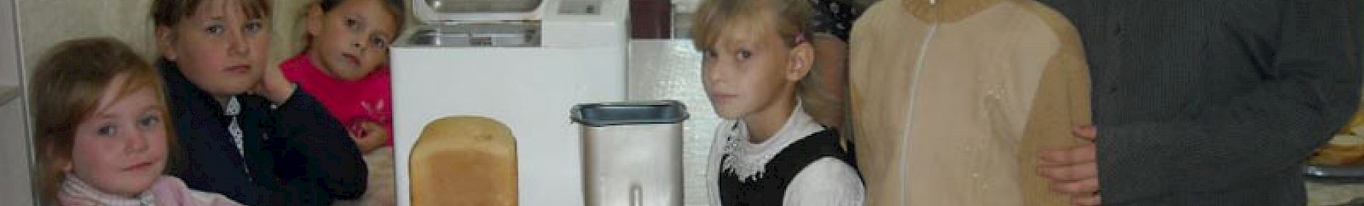 Heute hat Wera Kolomoetz ihre Brotbackmaschine mal in unserem „Zufluchtsort“ in Odarjewka auf den Tisch gestellt, dass alle Kinder sehen können wie sie funktioniert. Und als sie dann auch noch zu ihrer leckeren Suppe das frische Brot essen dürfen, sind unsere Gäste natürlich begeistert. Danke allen, die uns ihre Brotbackmaschine geschenkt haben.