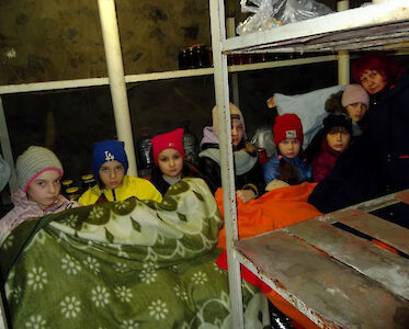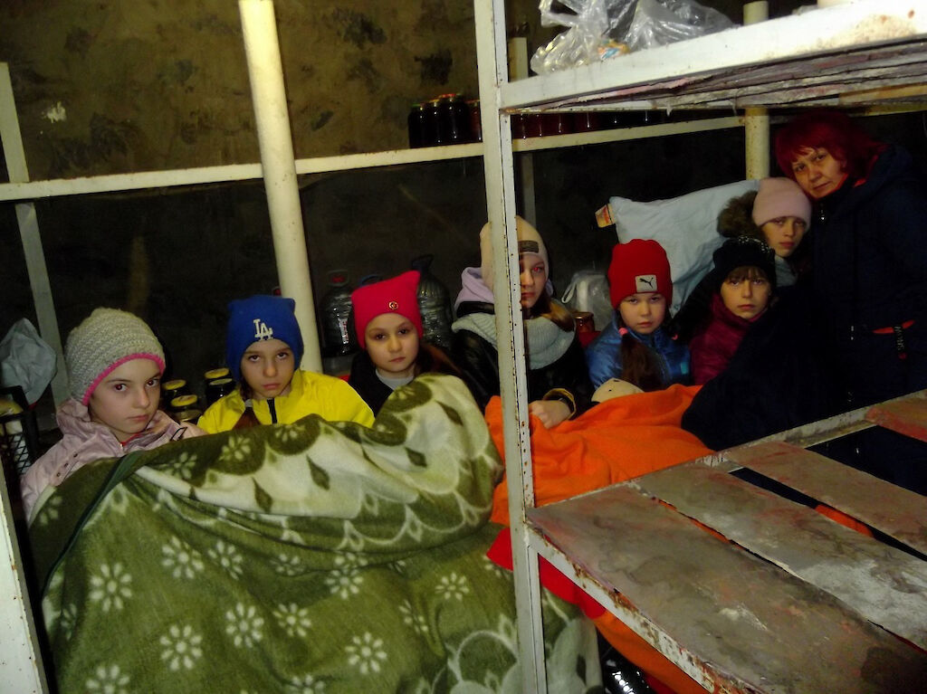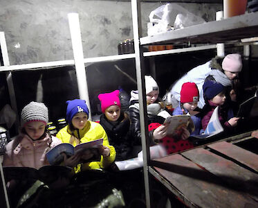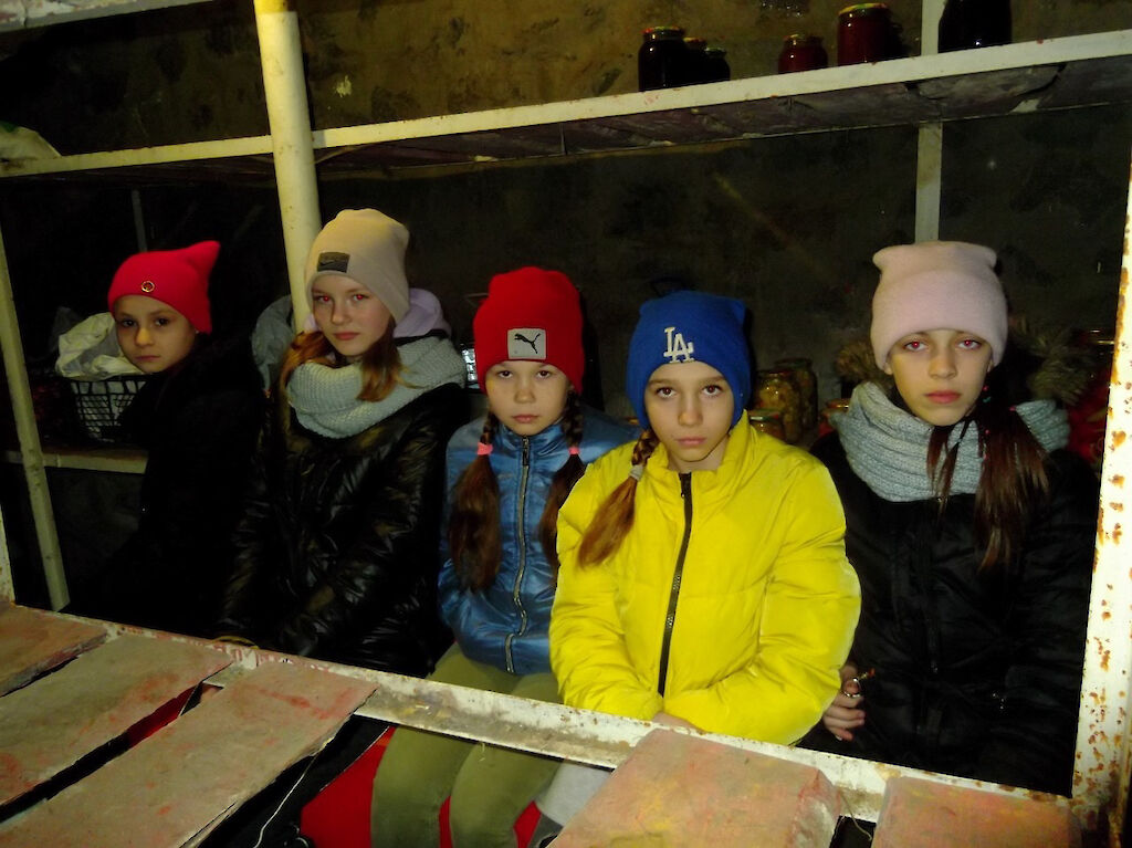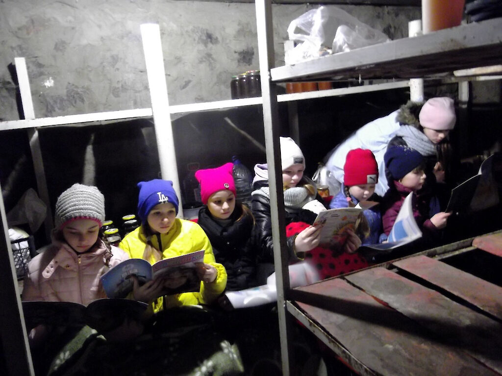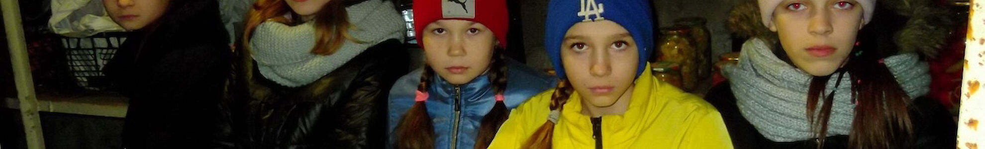 Dann, mitten im Spiel, heult schrill eine Sirene. Alle ziehen schnell ihre Jacken an. Verängstigte Kinder mit großen Augen voller Tränen sitzen im Kartoffelkeller auf harten Bänken, klammern sich fest aneinander. Sie haben große Angst und beten zusammen: „Lieber Gott, beende diesen Krieg. Bitte hilf uns!“