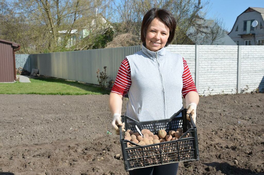 Zuerst haben wir auf dem halben Grundstück Karotten, Rote Beete, Zwiebeln und anderes Gemüse gesät. Danach wurde der Boden gedüngt. Im Anschluss haben unsere Mitarbeiter die zweite Hälfte mit Frühkartoffeln bestellt.