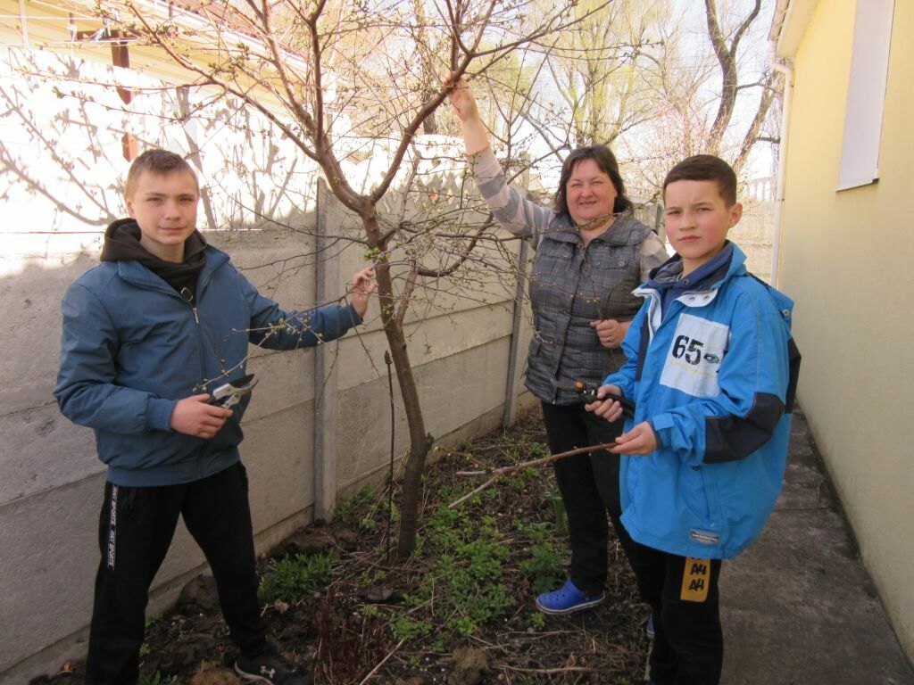 Es ist Frühling in der Ukraine, das Gras sprießt, die Bäume blühen. Trotz des Krieges sind unsere Mitarbeiter mit der Gartenpflege beschäftigt. Anja Losowaja ist in Switlowodsk dafür verantwortlich. Sie hat zwei fleißige Helfer, die sie im Rahmen eines Minijobs unterstützen. Dima und Ljoscha mähen den Rasen. Sie lernen, wie man Obstbäume beschneidet und diese gegen Schädlinge behandelt, wie man Blumenbeete pflegt. Anja zeigt den Jungen unsere Rasenmäher, erklärt geduldig alle „Geheimnisse“ der Gartenarbeit. Solch professionelle Werkzeuge kennen sie von zuhause nicht. Dima und Ljoscha arbeiten gerne mit Anja zusammen.