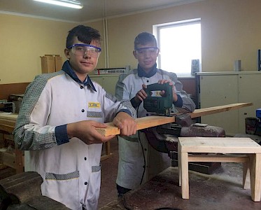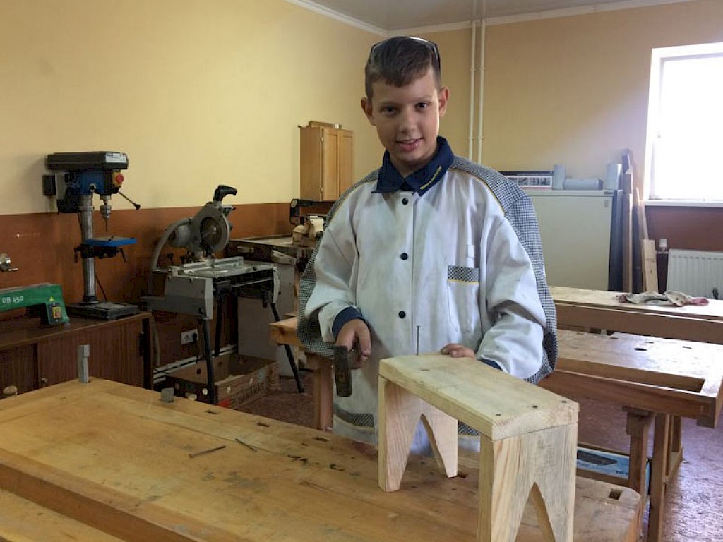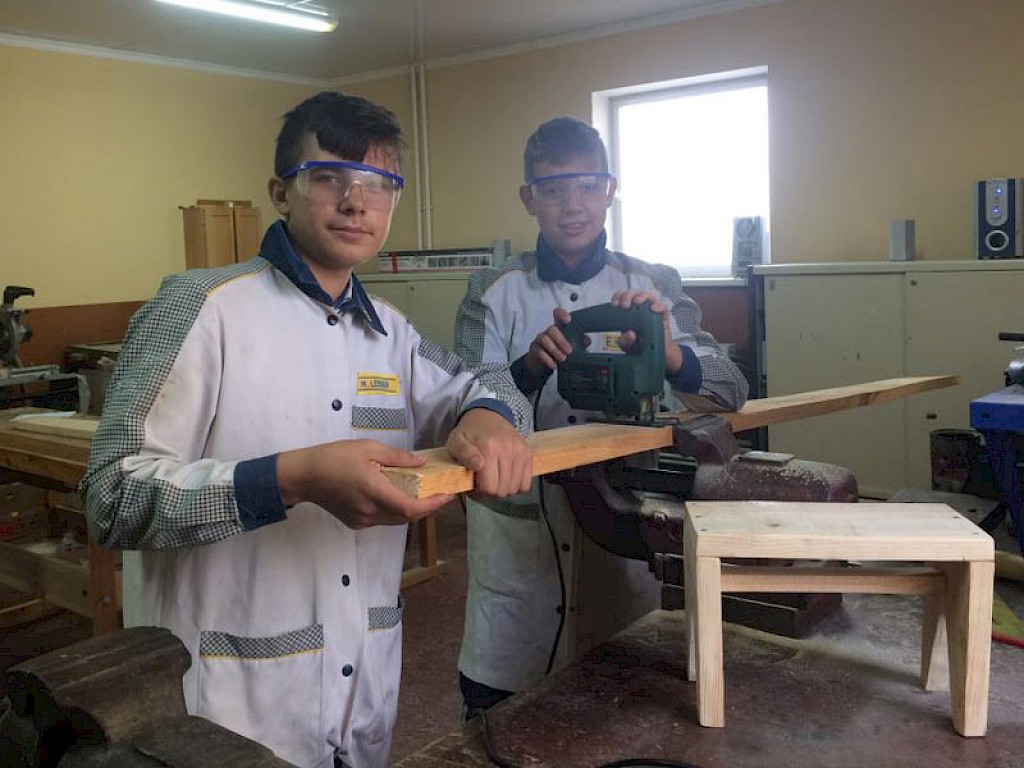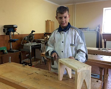 In der Zwischenzeit durchläuft bereits die dritte Gruppe unsere „Lehrwerkstatt für Jungen“. Unter der Leitung von Oleg Kurbatow lernen sie im Unterricht viele theoretische Dinge. Wir versuchen ihnen aber auch viele praktische Dinge beizubringen, die unsere Lehrlinge im Alltag gebrauchen können.