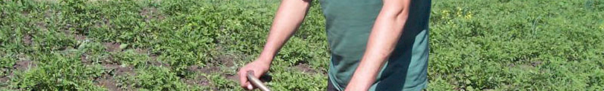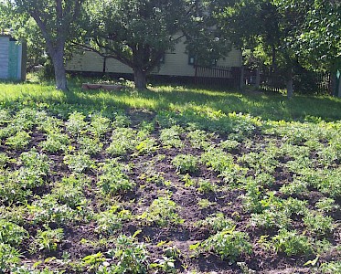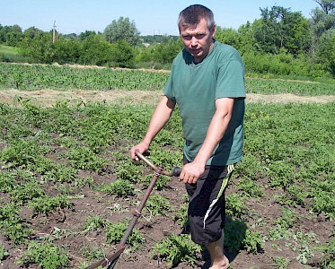 Hinter unserem „Zufluchtsort“ in Odarjewka erstreckt sich ein großer Acker von fast 5.000 Quadratmetern, auf dem wir Kartoffeln gepflanzt haben. Jaroslaw Galagowetz ist für unsere landwirtschaftlichen Projekte in Schorsk und Odarjewka zuständig. Bei über 30 Grad ist es oft nicht leicht alle Kartoffel- und Gemüseaktionen durchzuführen.