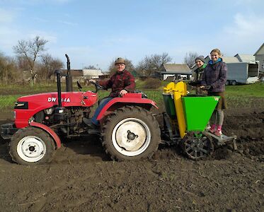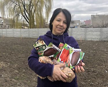 Die Sonne schien und alle Mitarbeiterinnen waren froh, dass es endlich an die frische Luft ging. Da wurde gesungen und gelacht. Luda Slobodianik, die unsere Hilfsaktionen leitet, hatte alles gut vorbereitet.