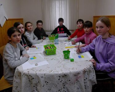Zum Mittagessen kommen „unsere“ Mädchen, die regelmäßig den „Zufluchtsort“ besuchen. Sie erfahren, dass Vasilisa heute Geburtstag hat und wollen ihr unbedingt gratulieren. Sie wünschen ihr alles Gute, Gottes Schutz und dass der Krieg so schnell wie möglich endet.