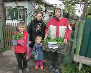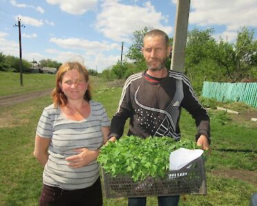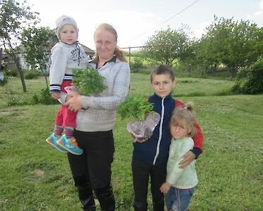 Luda Slobodianik leitet unsere Hilfsaktionen in der „Vergessenen Dörfern“. Im April war sie vom frühen Morgen bis zum späten Abend mit unserer „Kartoffelaktion“ beschäftig. Nun ist sie jeden Tag mit Gemüsepflanzen in den Dörfern unterwegs.