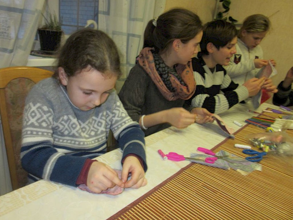„Sonja, was machst du denn so am Abend?“ Natascha Mitina hat ein paar Kinder im „Zufluchtsort“ in Boschedarjewka zu einem Handarbeitsabend eingeladen. Einige Mädchen spielen mit ihren selbstgebastelten Puppen. Ein Junge erzählt, dass er bis spät abends auf seinen Vater wartet, der dann meistens betrunken ist.