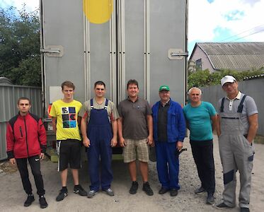 Wenn dieser Transport bei uns in Swetlowodsk eintrifft, ist unsere Lagerhalle bis zur Decke gefüllt und unsere Winteraktion „Von Herz zu Herz“ kann beginnen.