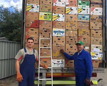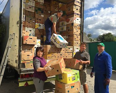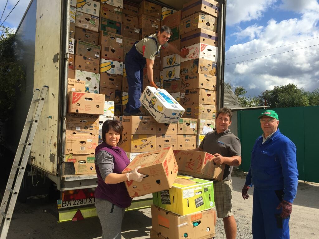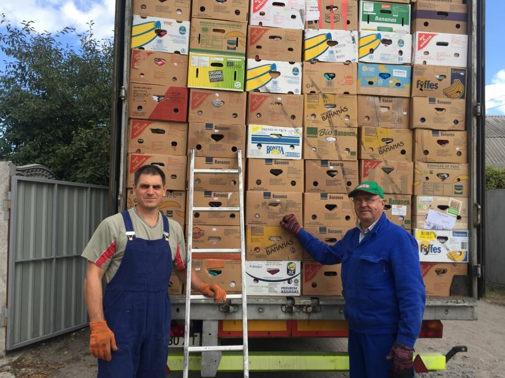 „Das war der letzte Bananenkarton!“ Heute bringt Luda Slobodianik, die unsere Hilfsgüterarbeit leitet die letzte Kleidung zu einer bedürftigen Familie in einem „Vergessenen Dorf“, bevor der nächste Hilfsgütertransport aus Deutschland bei uns in Swetlowodsk eintrifft.