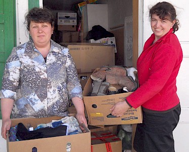 Nun arbeiten wir intensiv an den Hilfsgütern in Swetlowodsk!