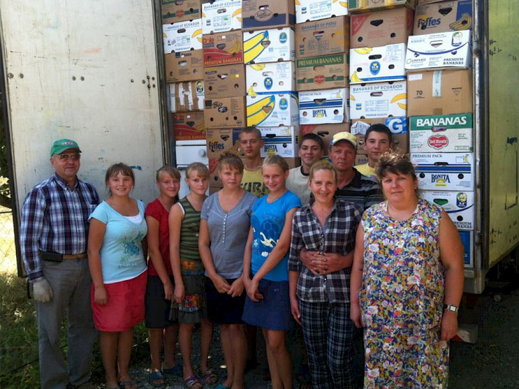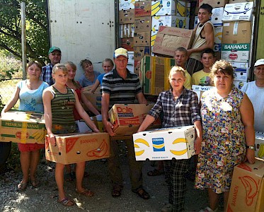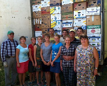 Nun musste Peter so schnell wie möglich Helfer suchen. Am Morgen ging es zum Zoll, am frühen Nachmittag nach Odarjewka und um 16:30 Uhr, am selben Tag, an dem der LKW in unserem Büro in Odarjewka eingetroffen war, war er auch schon in unsere versiegelte Lagerhalle abgeladen.