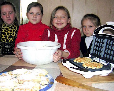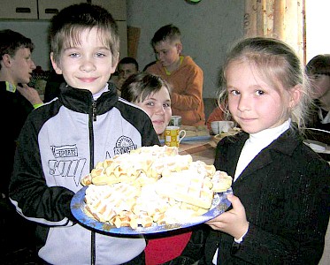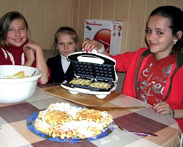 Heute macht Lena Uchnal, die unsere „Villa Sonnenschein“ leitet, ein ganz mysteriöses Gesicht und stellt einen geheimnisvollen Karton auf den Tisch. „Kinder, das ist ein ganz besonderes Geschenk von einer Sonntagsschule aus Osnabrück!“ Die Jungen und Mädchen können es kaum glauben, als wir ein neues Waffeleisen auspacken.