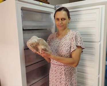 Im Frühjahr brachten unsere Mitarbeiter kleine Masthühner zu Anja Sobachenko. Anja hat sich verantwortungsvoll auf die Aufzucht von Geflügel vorbereitet. Sie hat den Stall desinfiziert und neue Futter- und Tränkeautomaten gekauft.