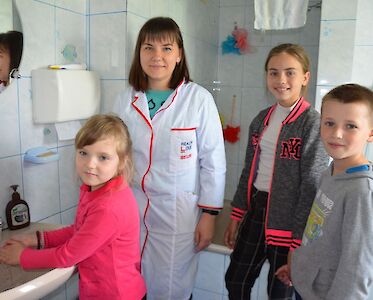„Stimmt es, dass eine Million unsichtbarer Bakterien auf unseren Händen leben?“, fragt Sonja erstaunt. „Ja, es ist sehr wichtig, dass man sich die Hände regelmäßig wäscht“, antwortet Nastja, unsere medizinische Mitarbeiterin.