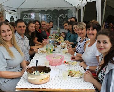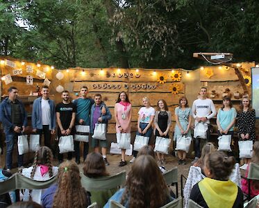 In der Abendveranstaltung fließen viele Tränen, denn es heißt Abschied nehmen. Sieben Mitarbeiter stehen auf der Bühne. Auf der großen Leinwand erscheint ein Bild von Diana, wie sie als kleines Mädchen im Sommerlager sitzt. Sie erzählt eine Geschichte aus dieser Zeit. Dann ein Bild, wie sie heute als Ärztin arbeitet. Wera, eine Erzieherin. Nastja, eine Programmiererin. Am Ende steht die Frage: „Und was machst du aus deinem Leben?“