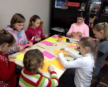 In unserer Handarbeitsgruppe „Aquarell“ basteln wir heute Postkarten und Girlanden. Die Postenkarten werden unsere kleinen Gäste an Geschenke hängen, die wir in den nächsten Tagen basteln. Und mit den bunten Girlanden wollen sie ihre Hütten festlich schmücken.