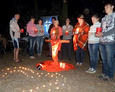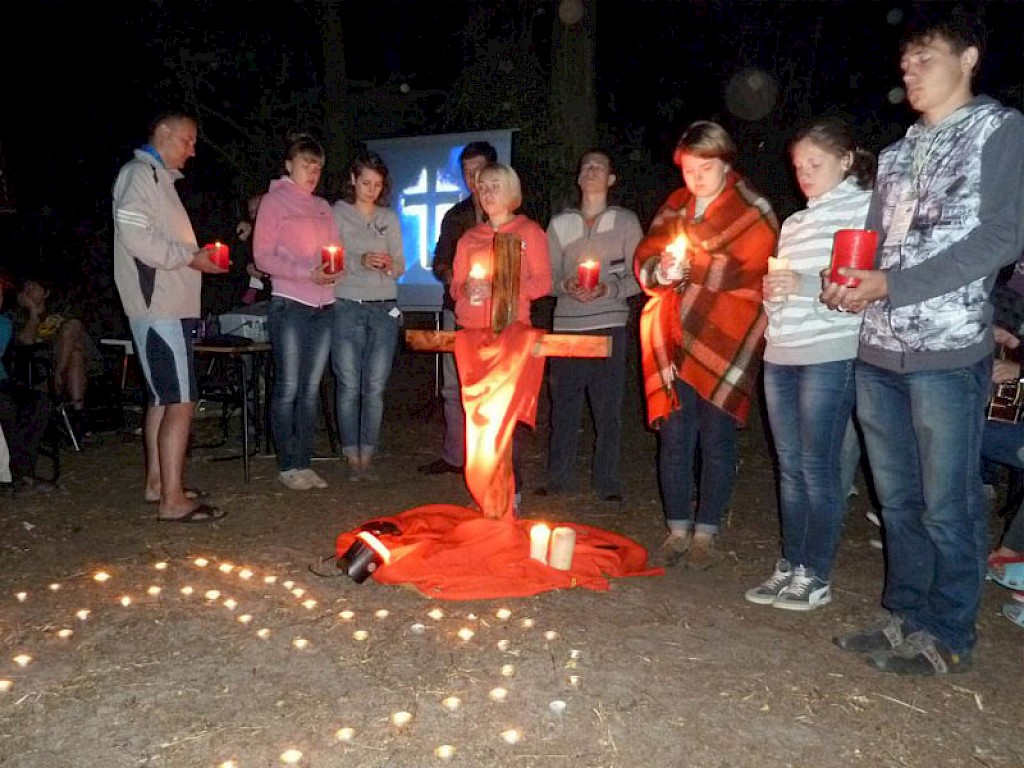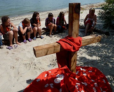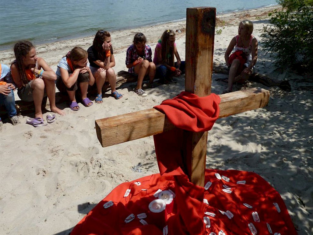 Am Rand vom Lager steht ein Kreuz. Nach der bewegenden Andacht gehen Jungen und Mädchen zum Kreuz, knien nieder, beten, nehmen Jesus in ihr Herz auf, schreiben auf Zettel ihre Sorgen, ihre Verletzungen. Überall sieht man kleine Gesprächsgruppen oder Kinder, die ihre Herzen bei ihren Teamleitern ausschütten. Am Nachmittag gibt es ein lustiges Lagerspiel und ein Wasser-Volleyball-Turnier.