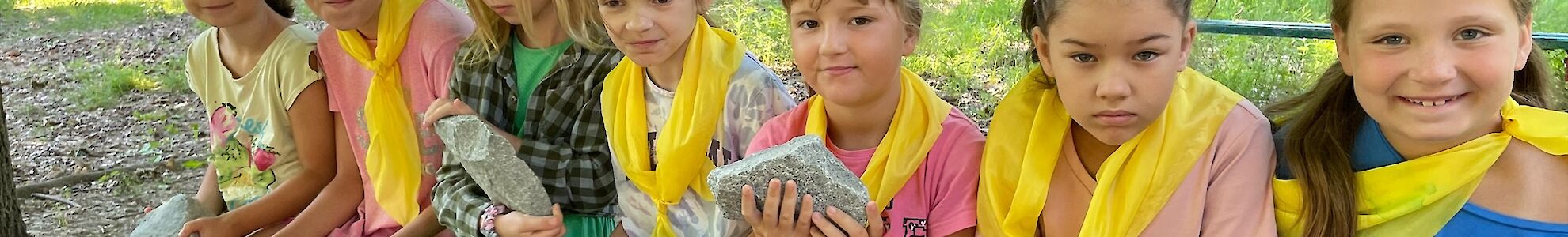 Nach dem Schmerz folgte die Liebe. Jedes Kind bekam am Morgen einen schweren Stein, den es den ganzen Tag mit sich herumtragen sollte. Um ihn wiederzuerkennen, beschrifteten die Kinder ihn. Im Laufe des Tages wurden sie immer kreativer. Manche malten Gesichter auf ihren Stein. Andere gaben ihm einen Namen. Am Abend legten alle ihren Stein unter das Kreuz, die Symbolik dazu wurde den Kindern erklärt.