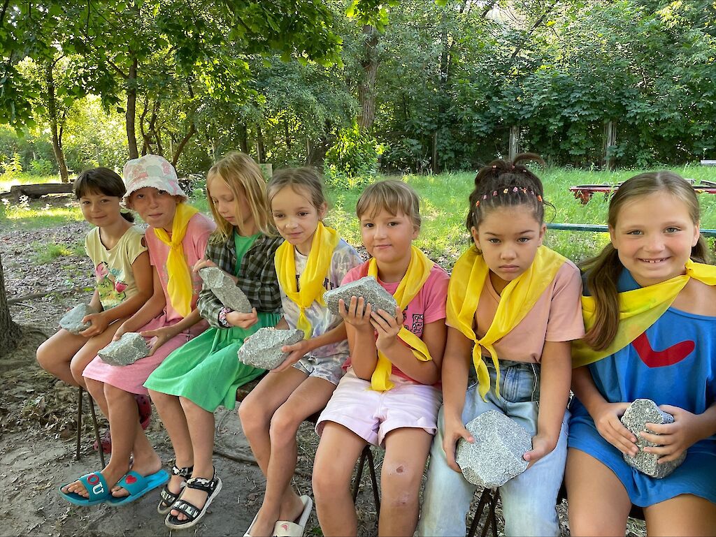 Nach dem Schmerz folgte die Liebe. Jedes Kind bekam am Morgen einen schweren Stein, den es den ganzen Tag mit sich herumtragen sollte. Um ihn wiederzuerkennen, beschrifteten die Kinder ihn. Im Laufe des Tages wurden sie immer kreativer. Manche malten Gesichter auf ihren Stein. Andere gaben ihm einen Namen. Am Abend legten alle ihren Stein unter das Kreuz, die Symbolik dazu wurde den Kindern erklärt.