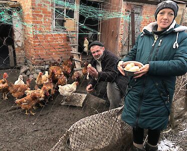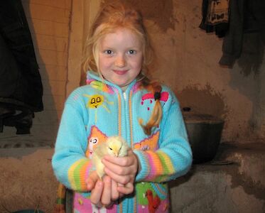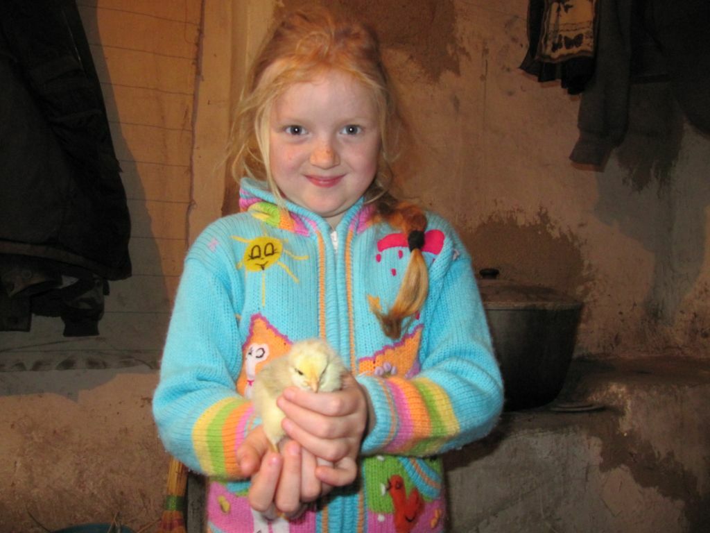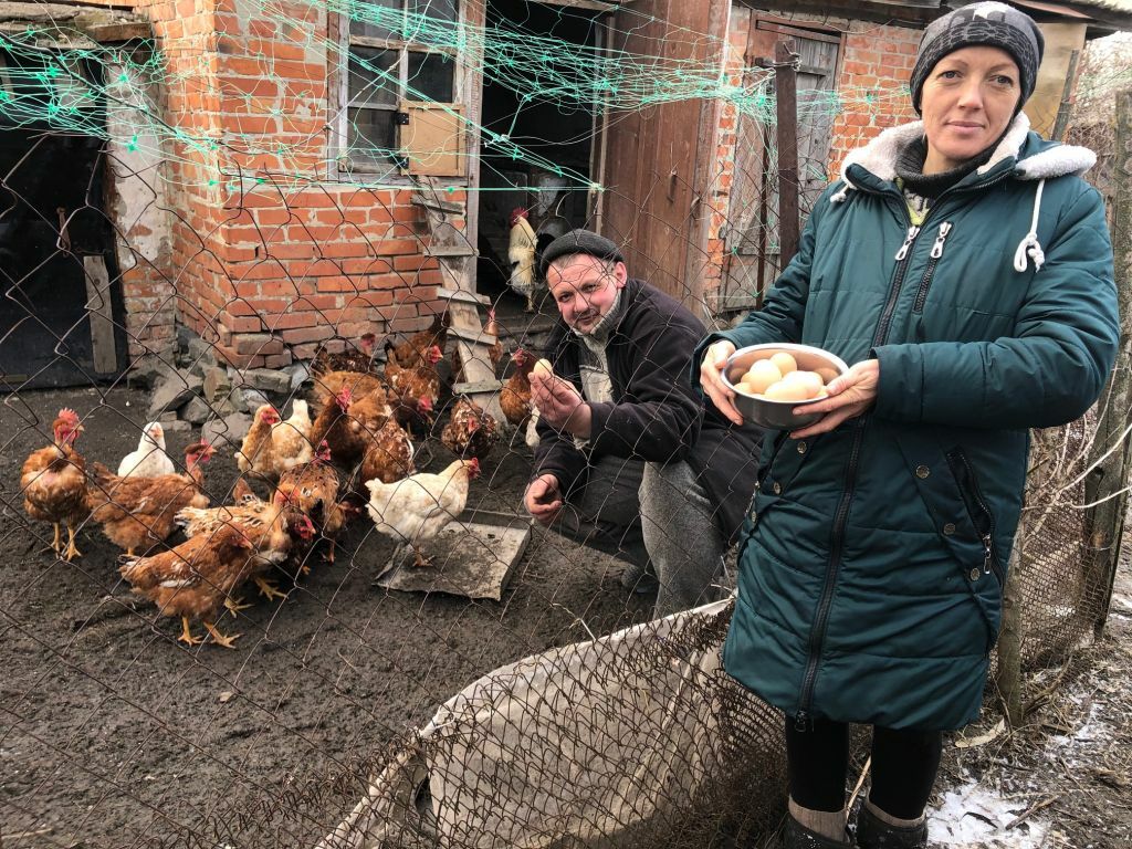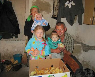 Familie Ponomar hat fünf Kinder. Sie wohnen in einem „Vergessenen Dorf“. Wir haben ihnen bereits Hühner geschenkt und nun haben wir sie zusätzlich mit Küken versorgt. Sie verkaufen die Eier in ihrem Dorf.