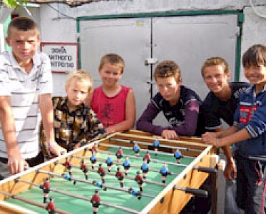 Vorsichtig öffnet sich die Tür vom „Zufluchtsort“ in Odarjewka. Mit einem mysteriösem Gesicht schaut Peter Degtjar in unseren Versammlungssaal und bittet zwei Jungen ihm zu helfen. Wenige Augenblicke später wissen wir, warum Peter gekommen ist. Er hat ein Tischfußballspiel aus Deutschland mitgebracht. Staunend, fast ehrfurchtsvoll, stehen die Jungen und Mädchen vor dem neuen Spielgerät, während Peter die Regeln erklärt. Dann sind sie auch schon nicht mehr zu halten, denn jeder will der Erste sein. Gemeinsam beschließen wir, dass heute die Bastelstunde ausfällt, da wir erst einmal ein Tischfußballturnier organisieren müssen. Wir danken allen Missionsfreunden in Deutschland, die uns immer wieder mit wunderbaren Geschenken überraschen.