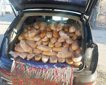 „Tante Anja, ihr habt aber viel Brot eingekauft! Das können wir doch hier in „Villa Sonnenschein“ gar nicht alles essen…“. Bogdan steht staunend neben unserem Auto und betrachtet ungläubig das Brot im Kofferraum. „Weißt Du Bogdan, das Brot ist auch nicht nur für uns. Wir verschenken es auch an bedürftige Familien, an Kinder, die momentan nicht in unsere „Villa Sonnenschein“ kommen können.“