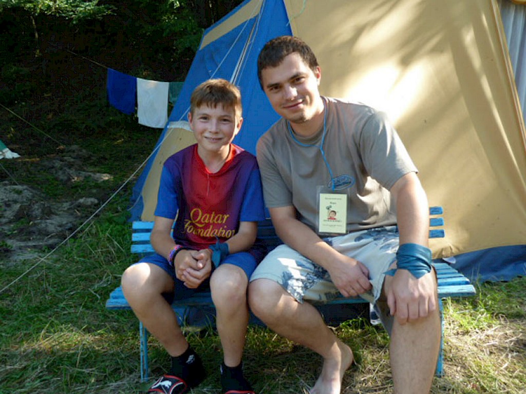 “Ich habe überhaupt keine guten Fähigkeiten! Meine Mutter sagt, ich habe gerade so eine Abtreibung überlebt. Ich werde jetzt etwas schlafen.“ sagt Kyrill und dreht sich traurig weg. Sein Teamleiter Oleg spricht gelassen weiter zu seinem Team. Er weiß, dass Kyrill weiterhin sehr aufmerksam zuhört und genau verfolgt, was in seiner Gruppe passiert. Er kennt die harte Lebensgeschichte des Jungen, weiß um seine Außenseiterrolle, seine Probleme und Sorgen. Oleg hat das Strahlen in Kyrills Augen gesehen, als er aus dem Bus stieg und die Zeltstadt, das Volleyballfeld, das Trampolin und zum ersten Mal den langen Strand am Dnjepr Fluss gesehen hat. „Darf ich dort schwimmen? Kann ich all das benutzen… einfach so zum Spaß?“