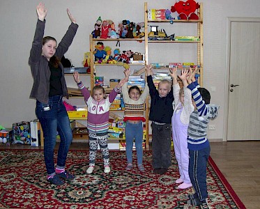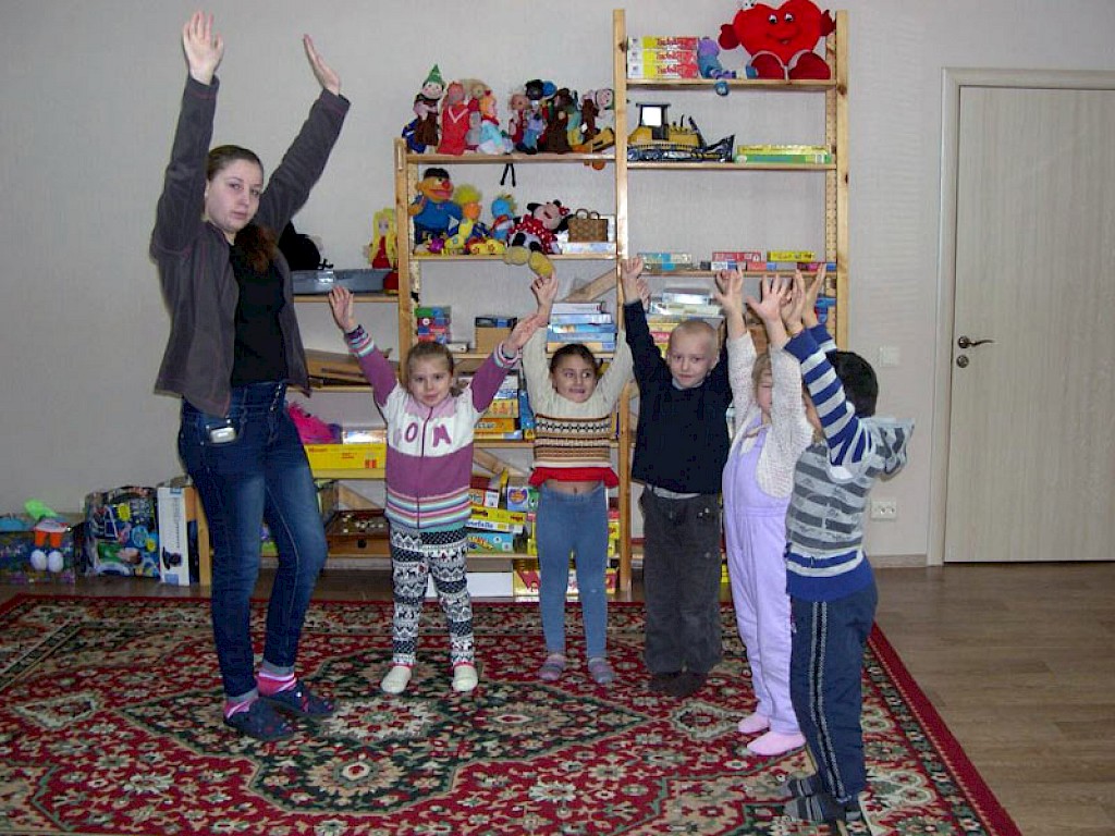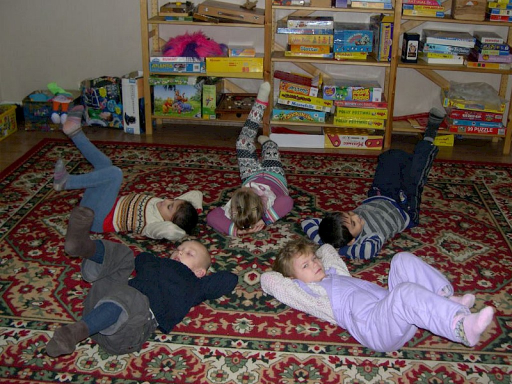 „Kinder, wer von euch kann am schnellsten Fahrrad fahren?“ Vor Lisa Sacharowa liegen unsere „Spatzen“ auf dem Boden, strampeln mit ihren Beinen in der Luft. Lisa hat viele Jahre unseren „Zufluchtsort“ in Odarjewka besucht.