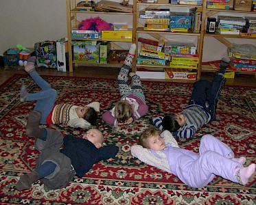 „Ich bin schon ganz müde, darf ich mich ein wenig ausruhen.“ Unsere „Spatzen“ lernen Lesen, Schreiben, Rechnen, bekommen aber auch andere Fähigkeiten mit auf den Weg. Sie lernen logisches Denken und besuchen die Gymnastikstunden von Lisa.